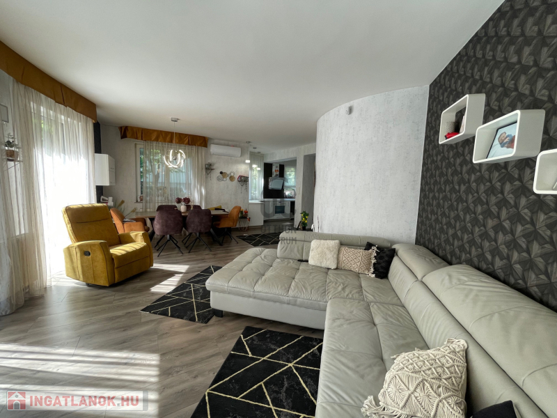 - Modern nappali–étkező: 35 m²