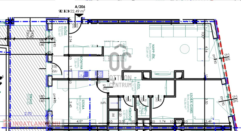 Debrecen abszolút Belvárosában, de mégis csendes övezetben, modern, egyedi megjelenésű, liftes társasház épül a földszinten 4 üzlettel és a -1 szinten teremgarázs parkolókkal. A lakások között vannak földszinti kertkapcsolatosak, és penthouse jellegűek is. A projekt tervezésénél, az elsődleges szempont az otthonos, élhető lakások építése volt. Az épületben helyet kapó lakások mindegyike egyedileg kialakított tágas terekkel, jó funkcionalitással és nagy méretű loggiákkal, teraszokkal rendelkezik. A lakások minőségi anyagok felhasználásával készülnek, a legkorszerűbb 3 rétegű üvegezésű ablakokkal, hőszivattyús klímával ellátottak. A belvárosban található ingatlan pár perc sétára található a Nagytemplomtól, a Piactól és a Bevásárló központoktól. Egyéb információért hívjon bizalommal. Ez a 2. emeleti lakás 92,62 nm-es, nappali-étkező-konyha +2 szobás, 22,49 nm-es terasszal.