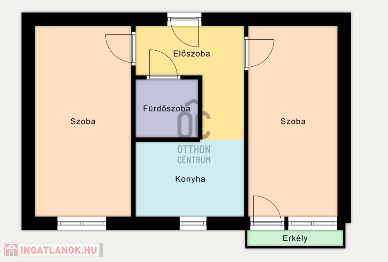 - 2 különnyíló szoba, jól használható elrendezés